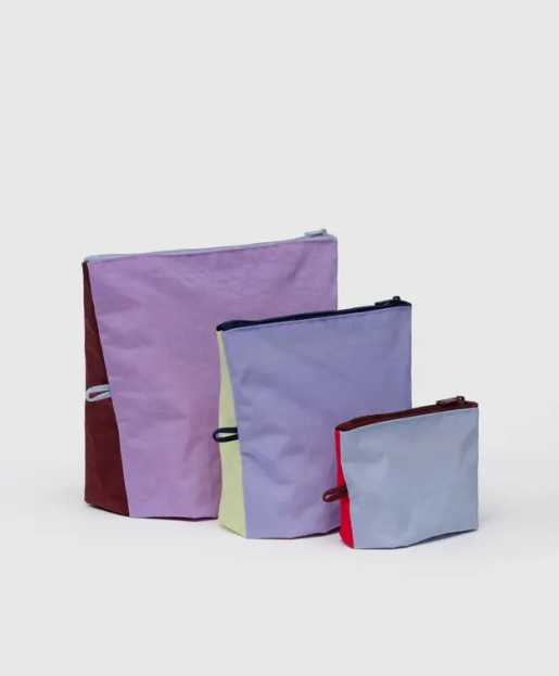 Go Pouch Set makes it easy to keep your bag neatly packed and organized. Whatever you're toting—coins, cords, or an extra pair of shoes—this set of three all purpose pouches keeps it together. They expand to hold your essentials and lay flat when not in use.