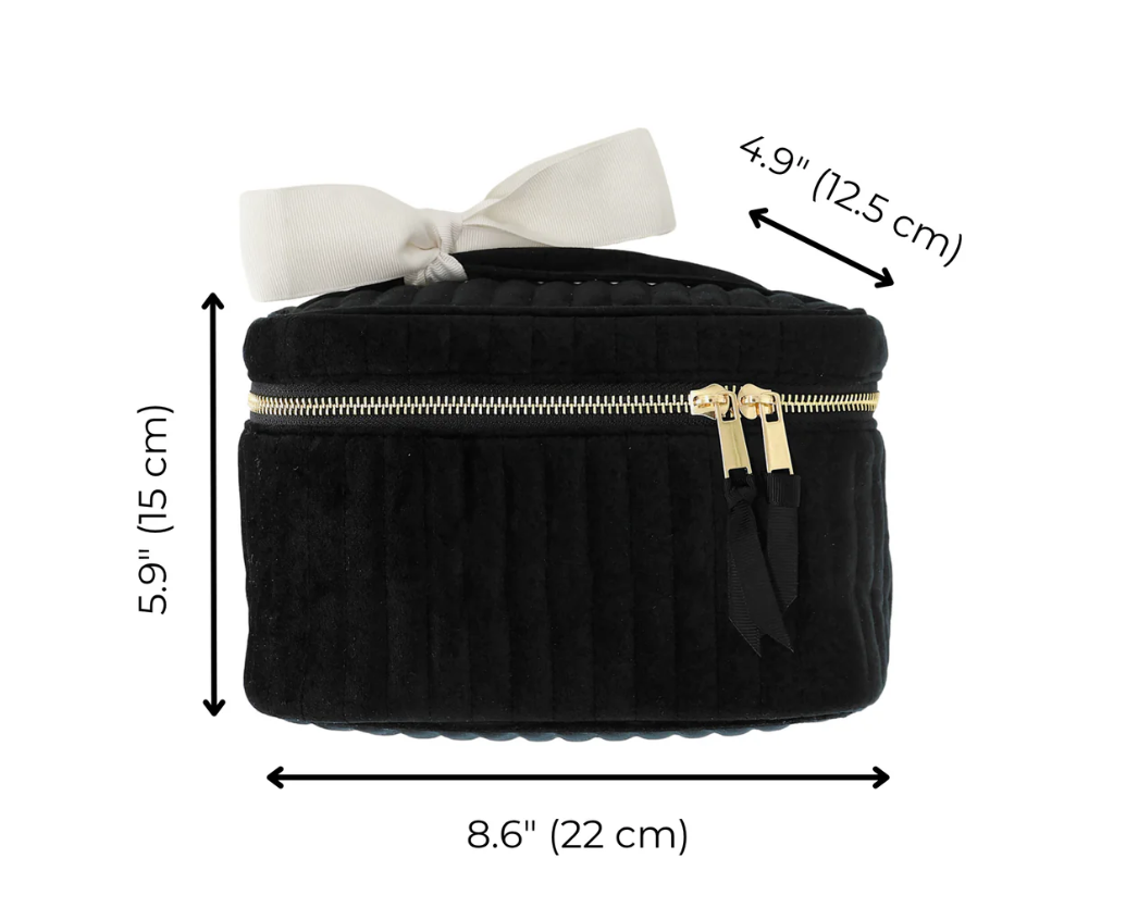 The My Makeup Cosmetic Box, Quilted Black Velvet, is the ultimate choice for organizing your beauty essentials at home or on-the-go. Its square with quilted shape allows for easy visibility and can accommodate a large number of products. Made of eco-friendly velvet, it exudes chicness and sophistication.