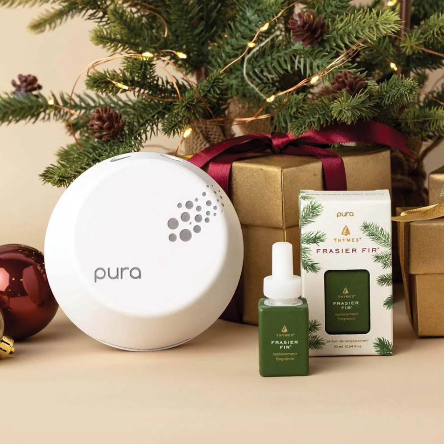 Thymes has partnered with Pura to bring our iconic fragrances to life with Pura’s V4 Smart Home Diffuser technology. Now featuring adaptive diffusion, auto vial detection and an improved look. This kit includes one diffuser and two fragrance refills – Frasier Fir.
