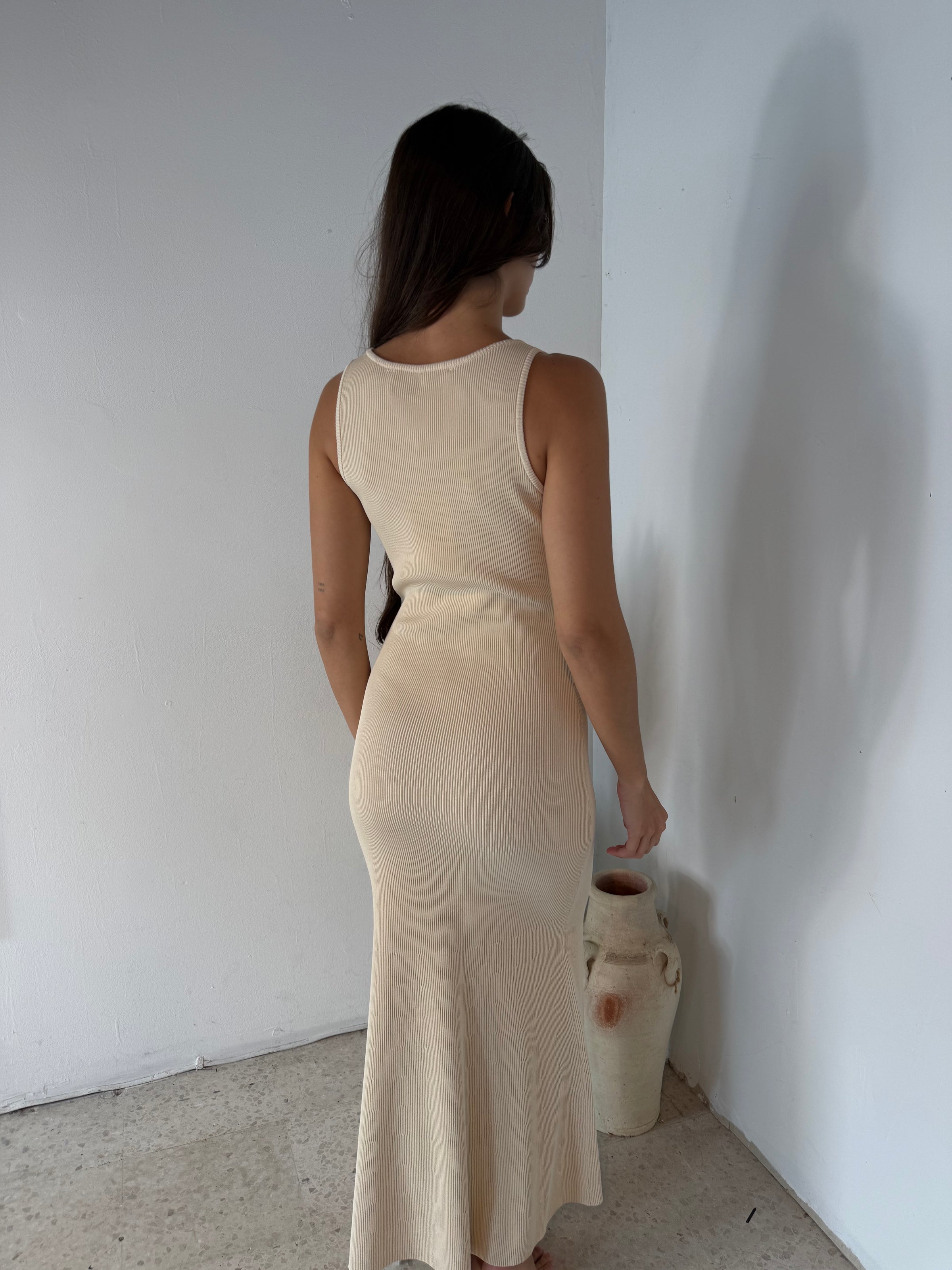 Sweetheart Cream Ribbed Dress