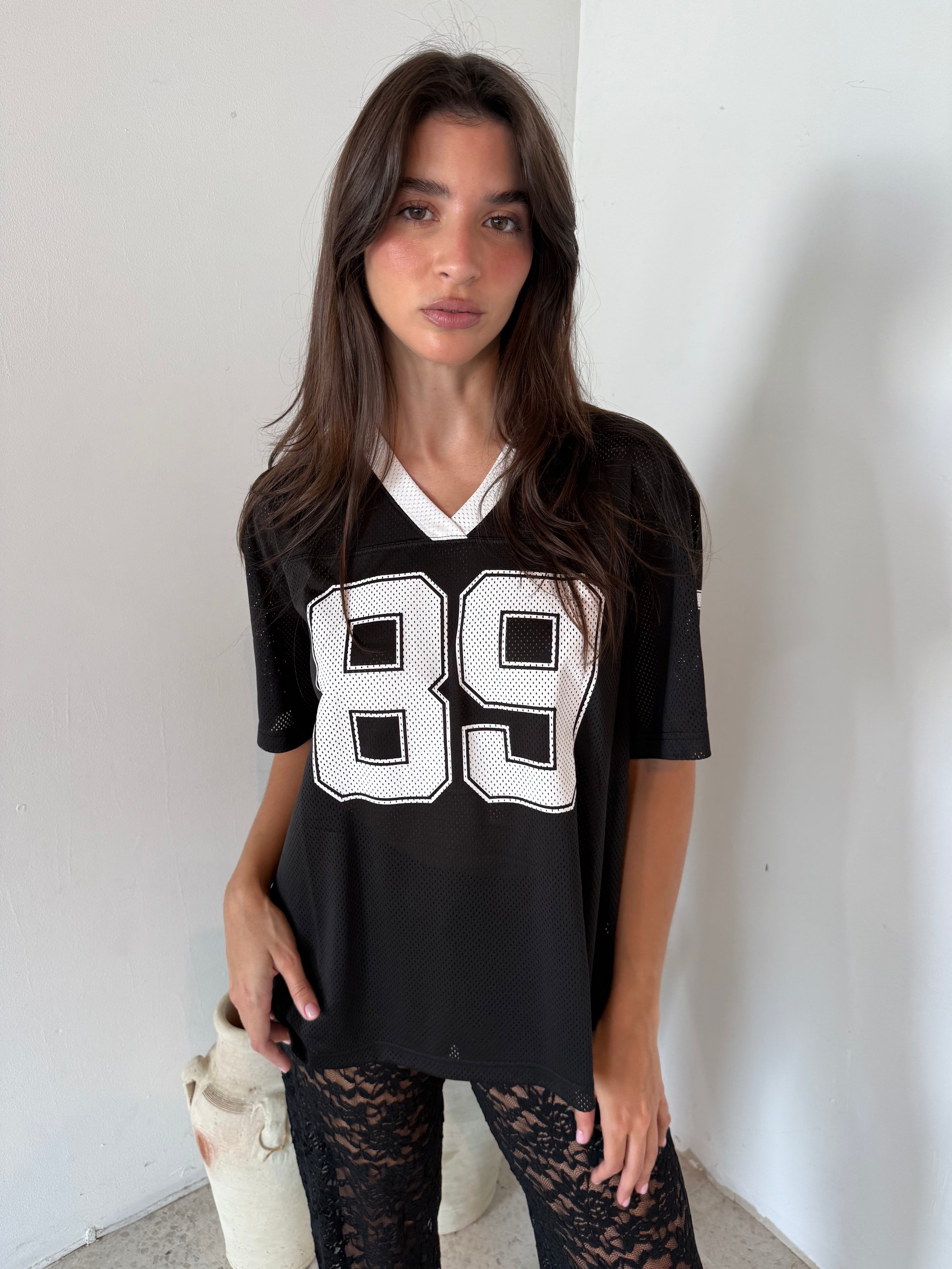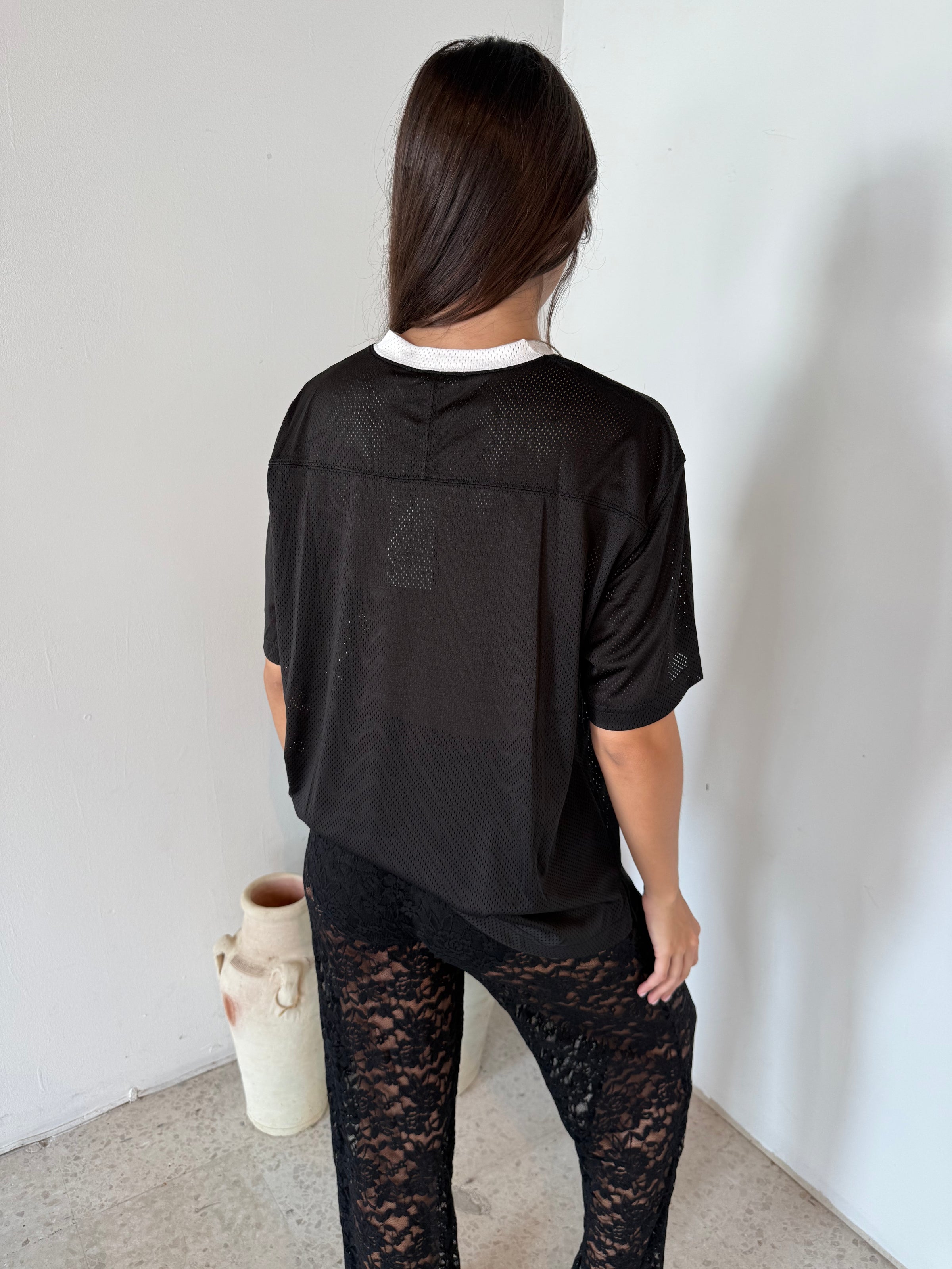 Black Mesh Jersey Top