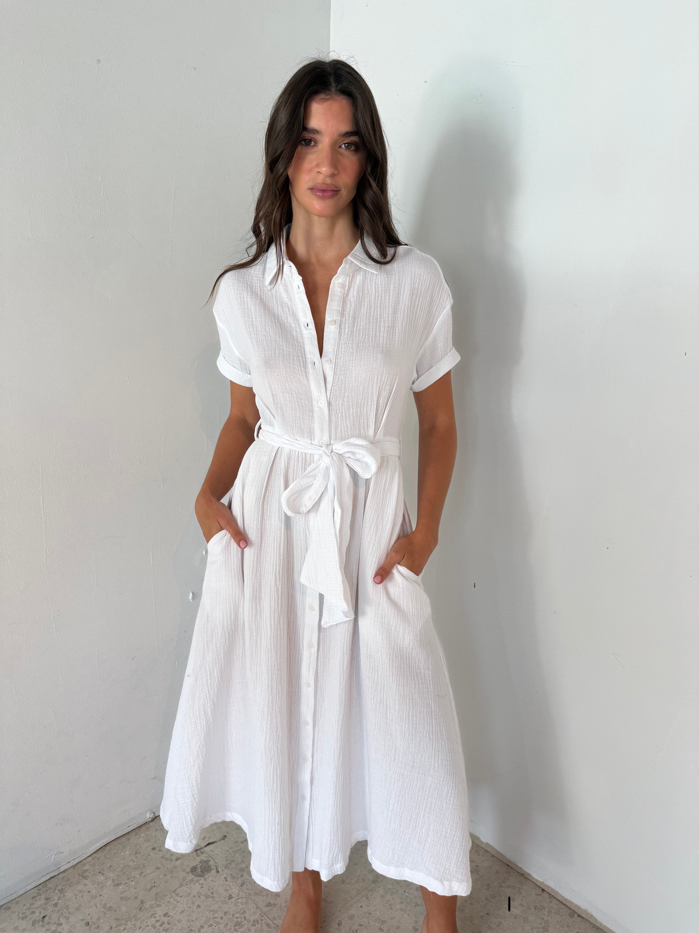 Gauze SS Button Dress