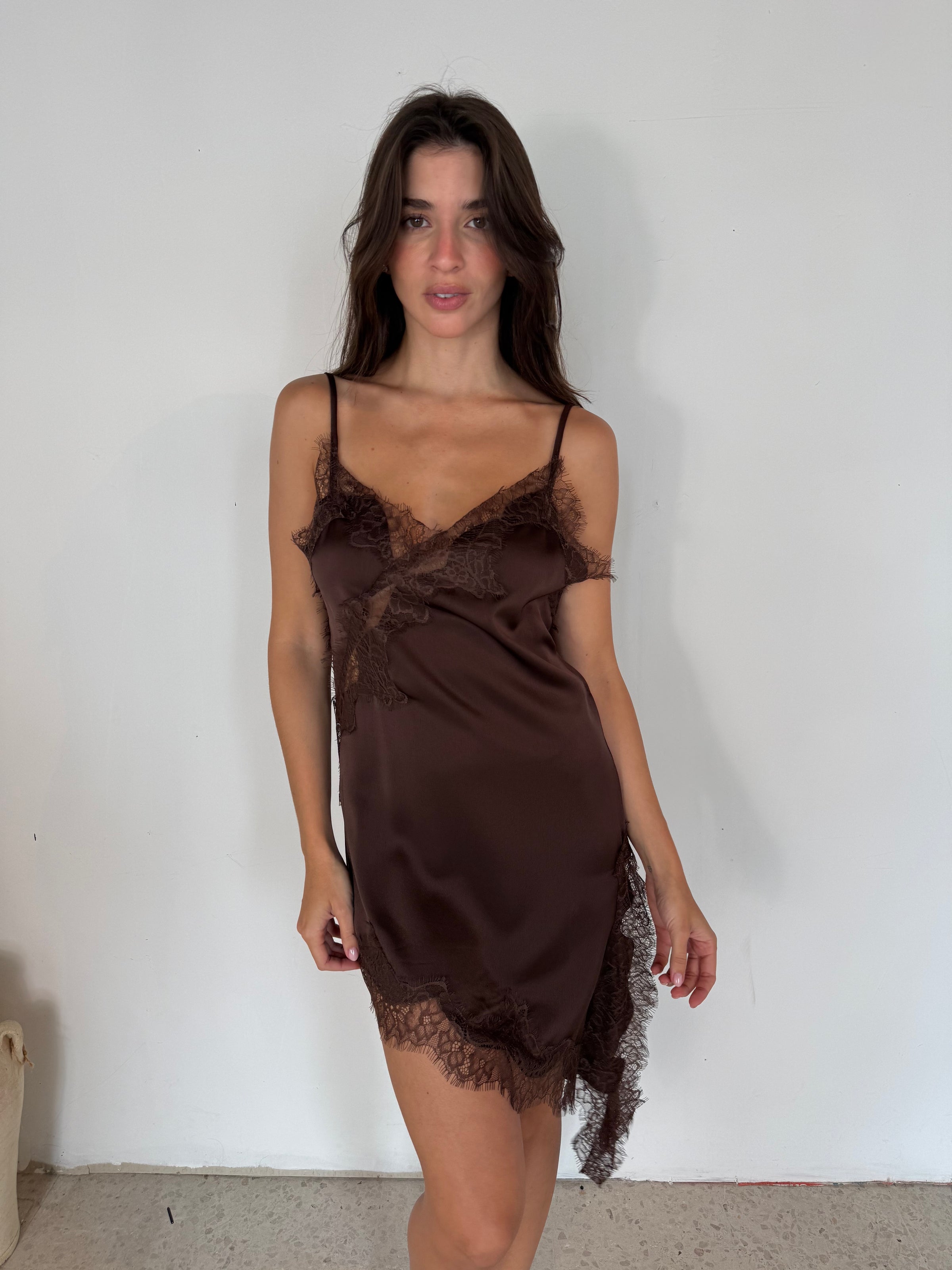 Lace Trim Spaghetti Strap Asymmetrical Dress