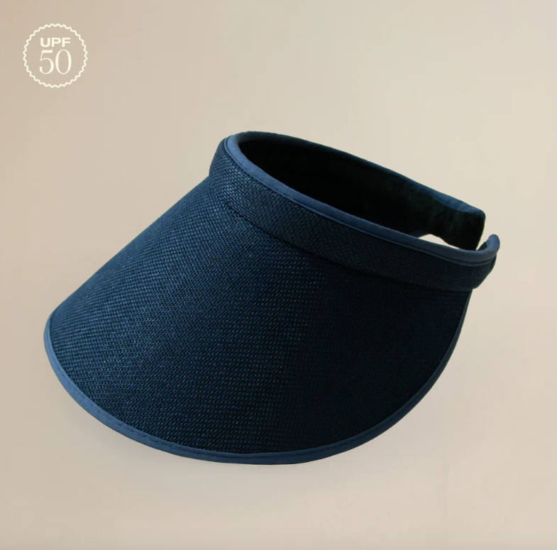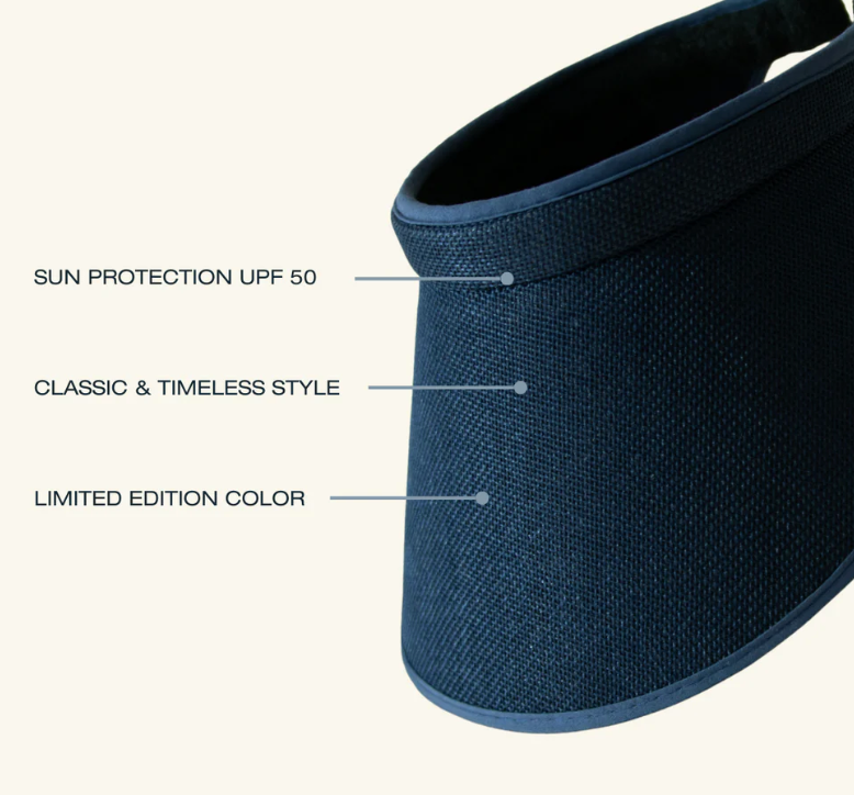 The Navy Visor is your chic companion for late-summer rituals and weekend escapes. Inspired by the iconic ease of East Coast summers, this piece blends UPF 50 sun protection with polished, all-American elegance.