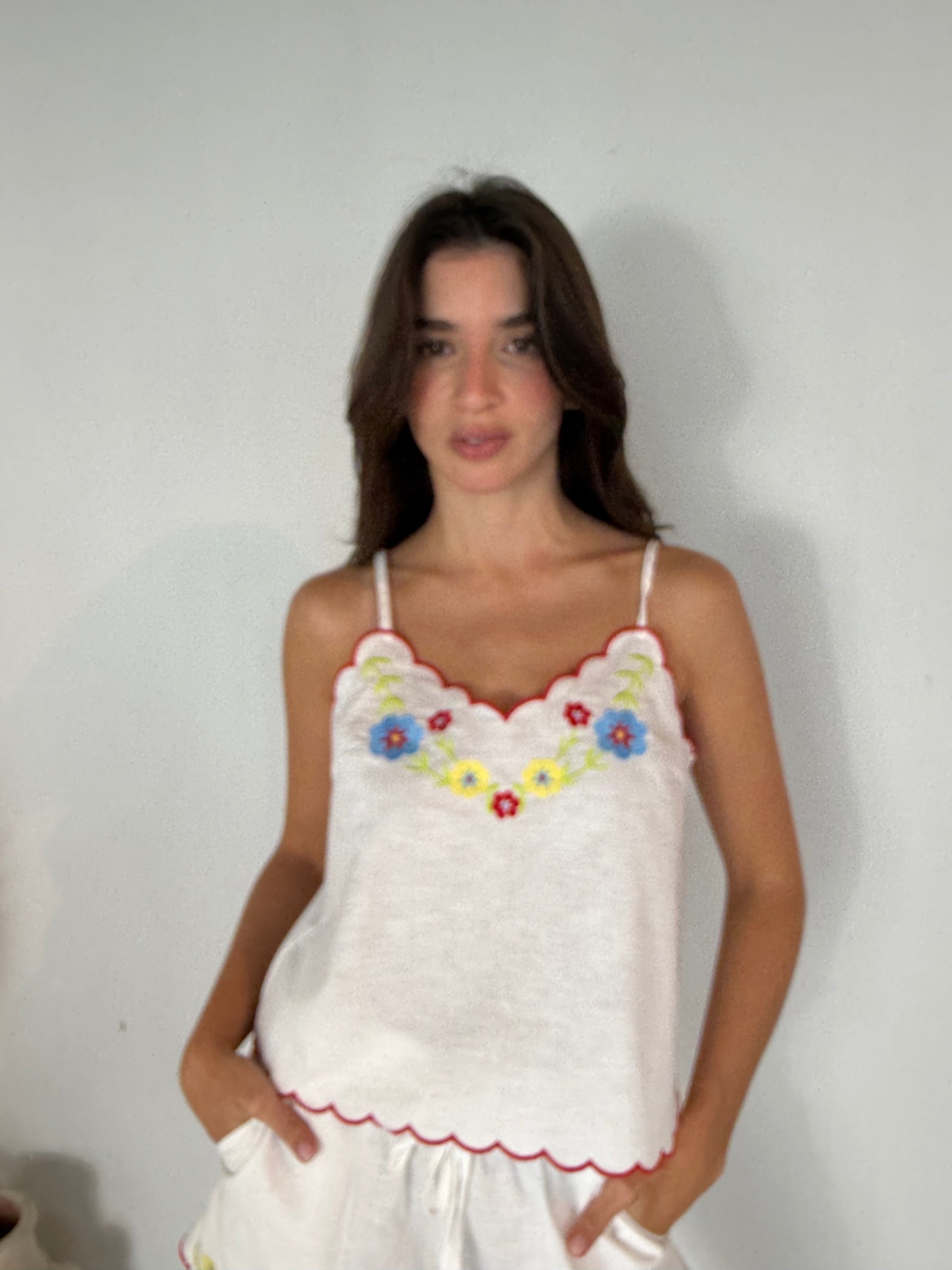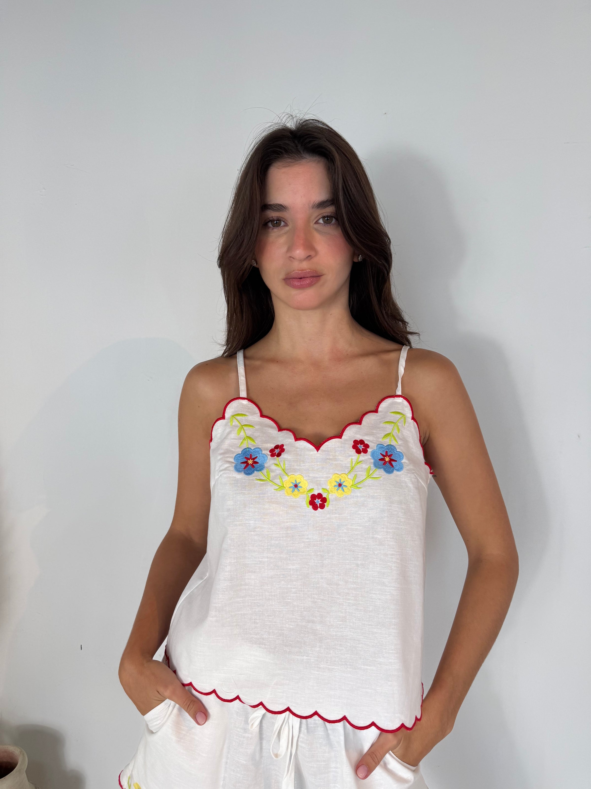 Red Scallop Embroidered Set