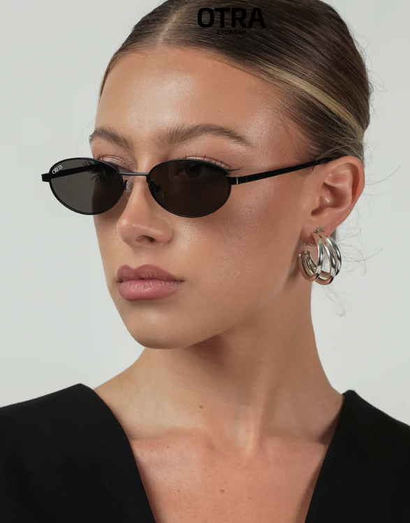 Meet Rosie, our modern take on the classic oval sunglass, reimagined in sleek black-on-black. With its slim, lightweight silhouette.