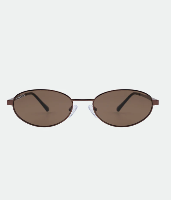 Meet Rosie, a modern take on the classic oval sunglass, crafted in warm chocolate-toned metal with soft brown lenses. Slim and lightweight, it blends vintage charm with contemporary ease.
