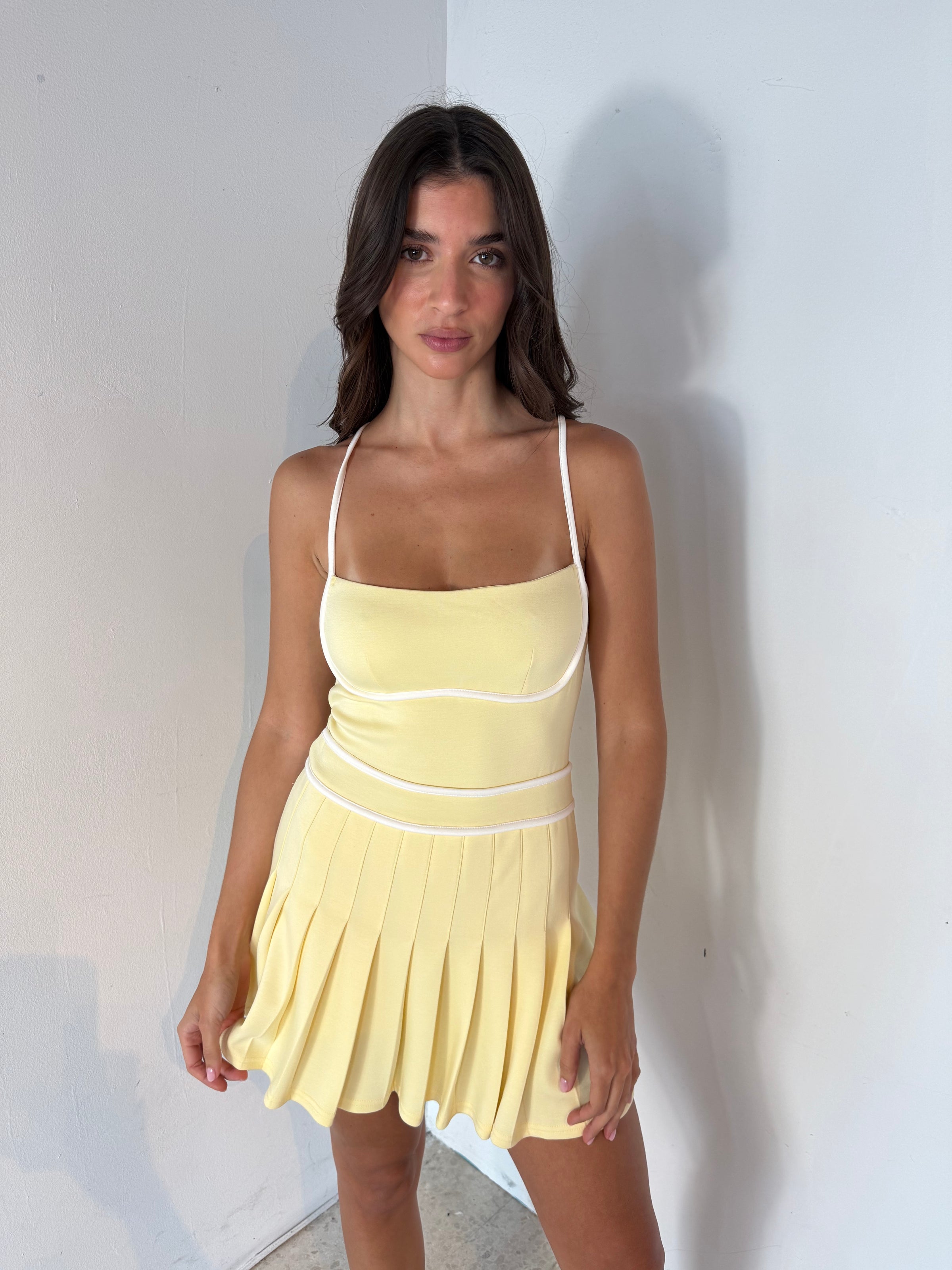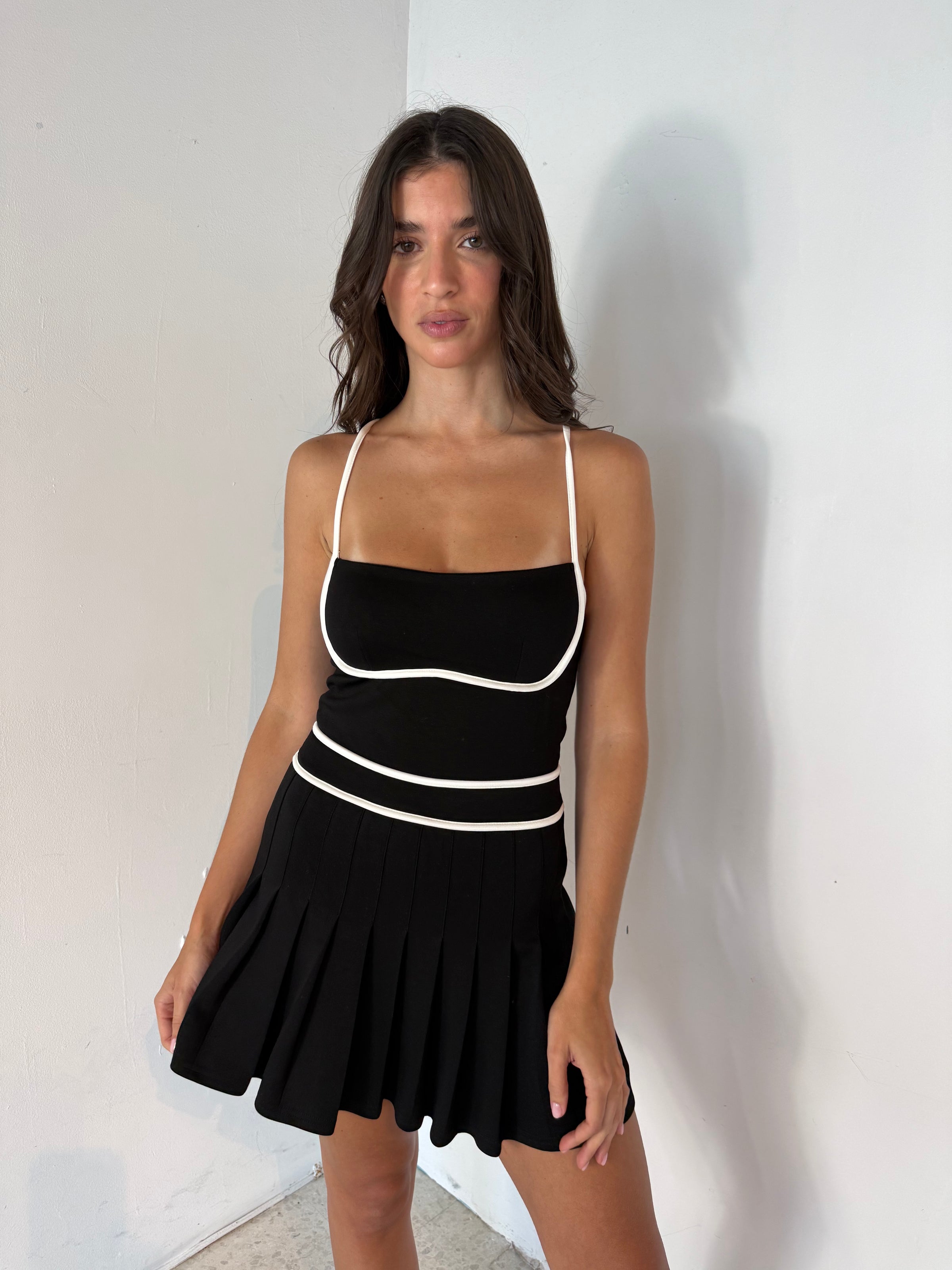 Scuba Pleated Romper Dress