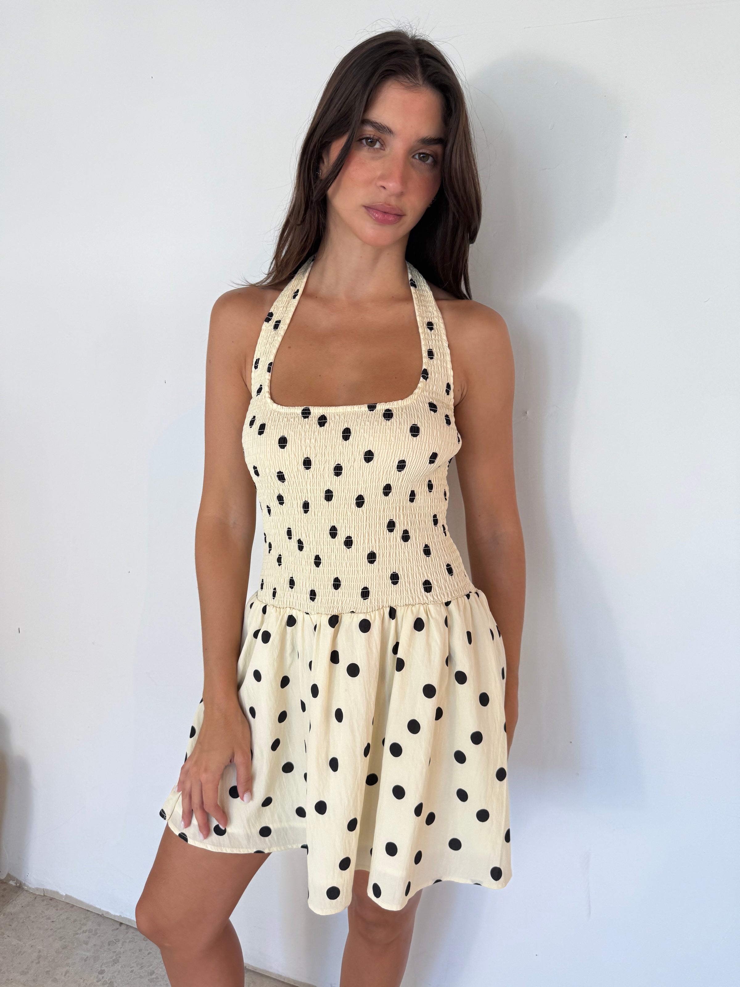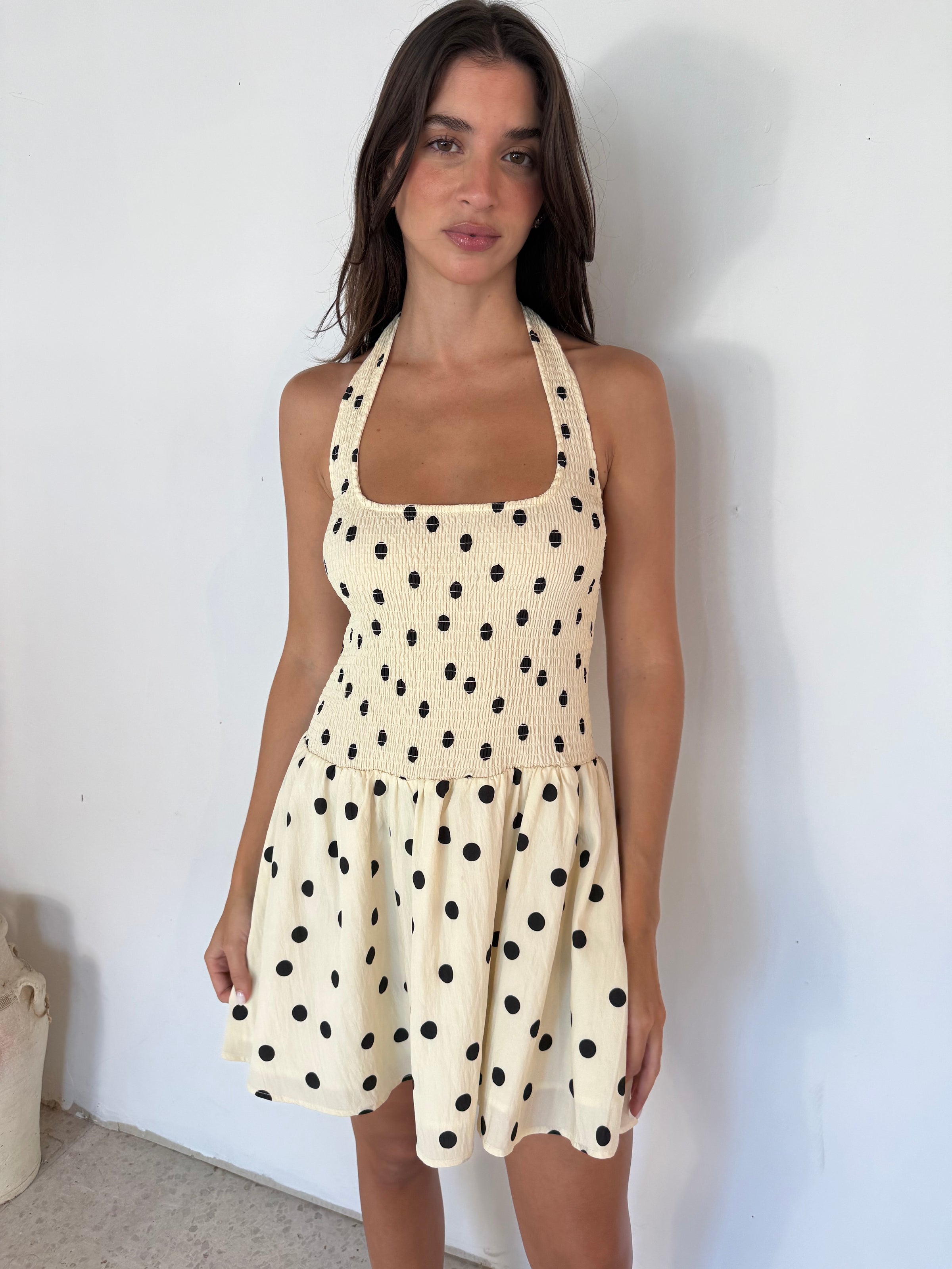 Smocked Polka Mini Dress