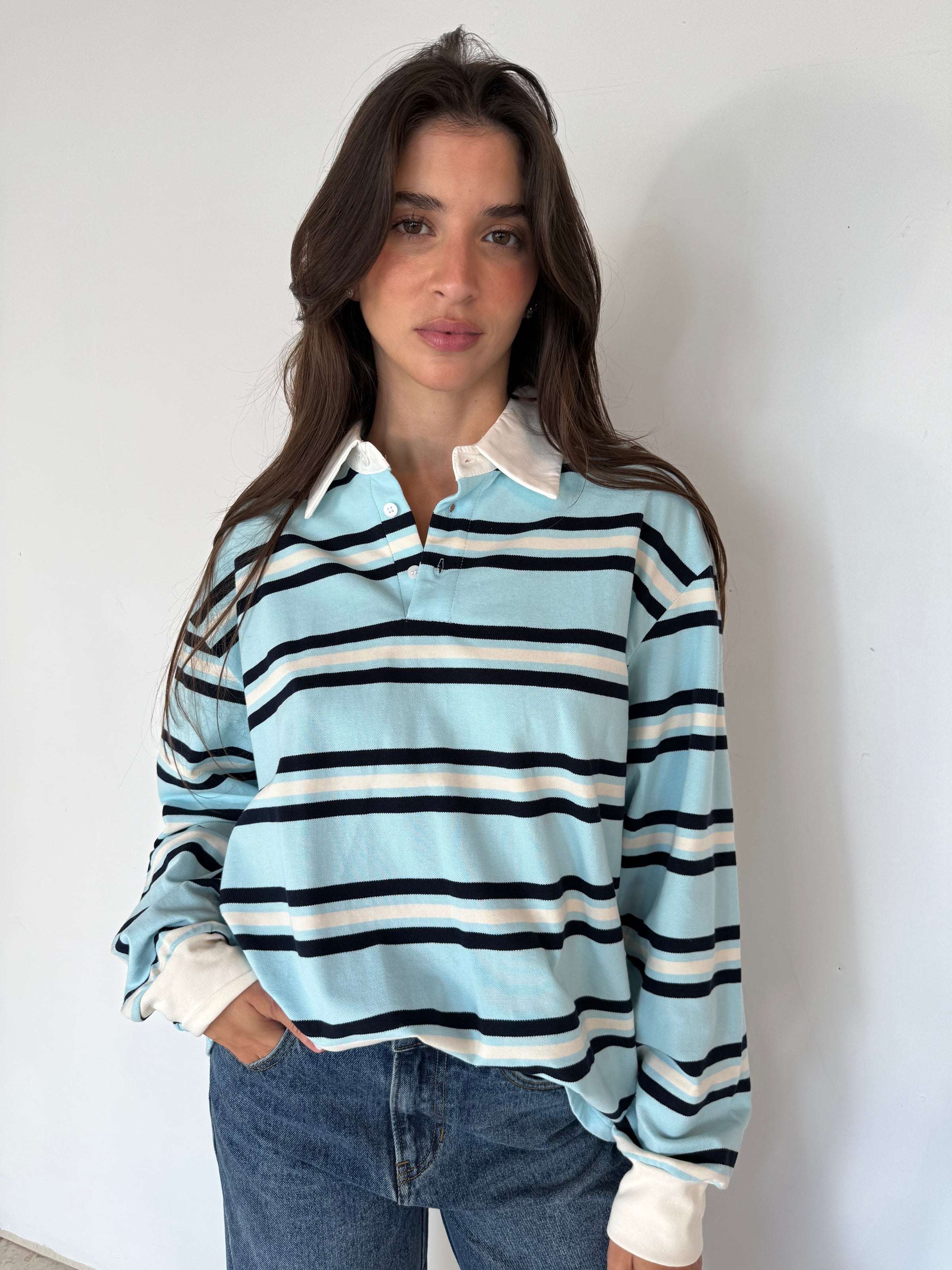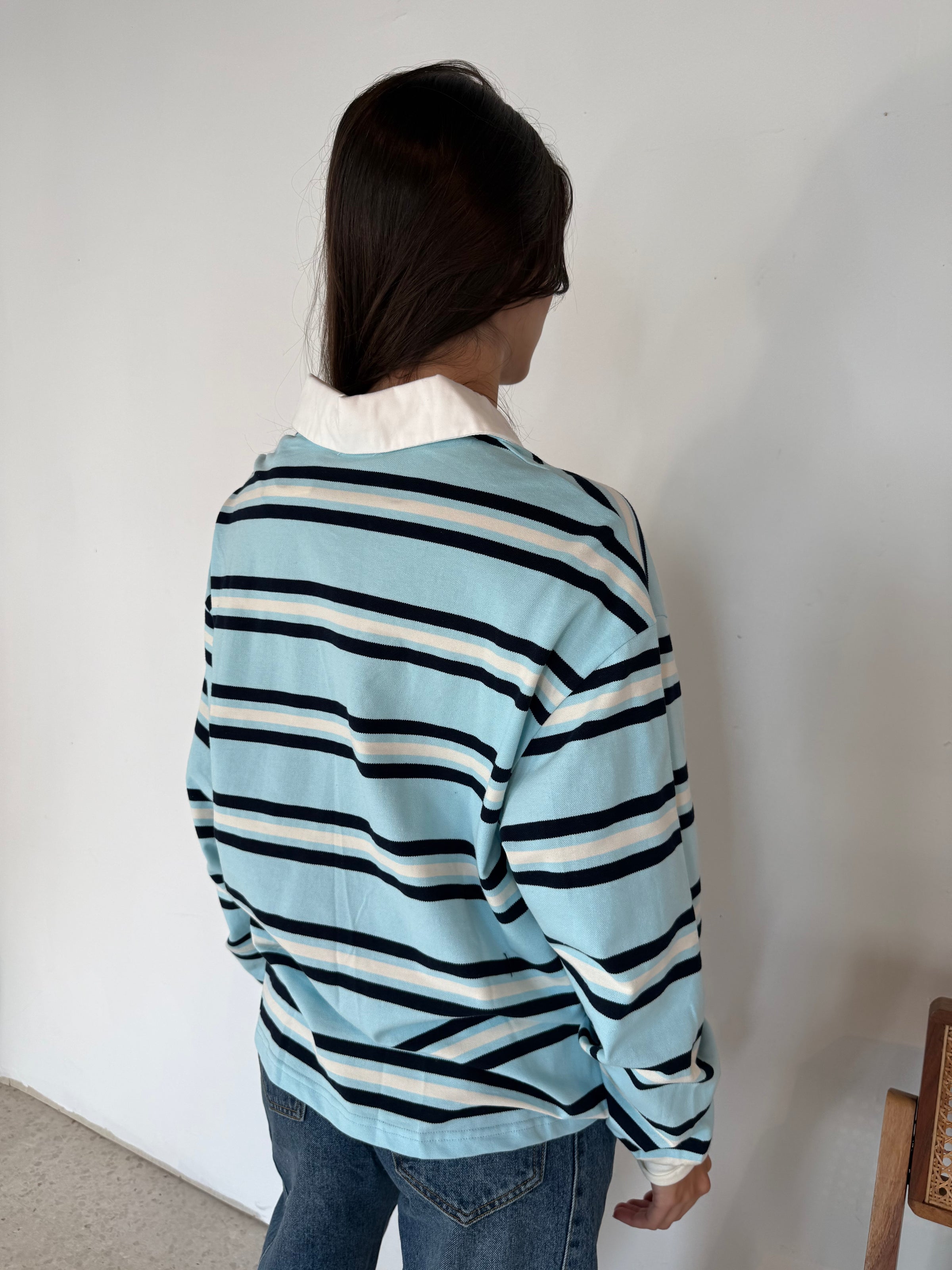 Sky Navy Stripe LS Top